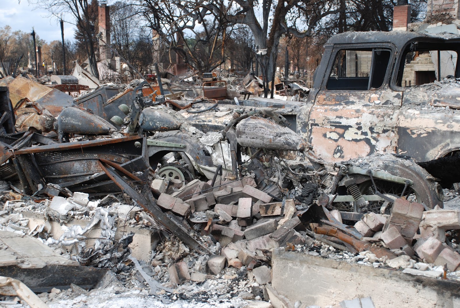 Monday, October 9 in the early morning hours, fire, pushed by unusually high winds, blasted into the Northern Santa Rosa neighborhood known as Coffey Park. This fire was named the Tubbs Fire but 14 other fires, all fanned by the high winds burned in Sonoma and the neighboring counties. More than 40 people died and over 8300 buildings were destroyed.